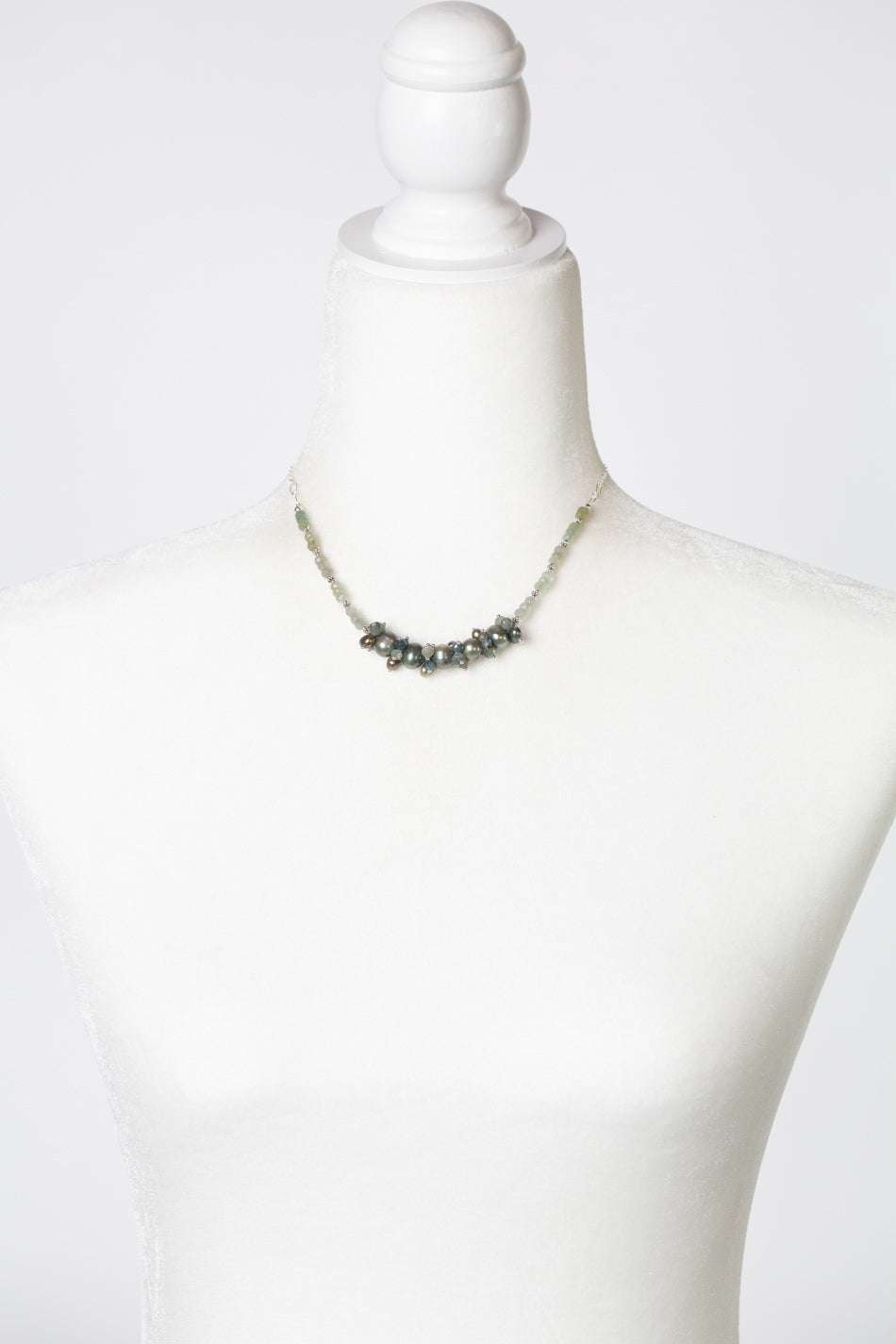 Resilience 15.25-17.25" Green Moss Aquamarine With Freshwater Pearl Cluster Necklace