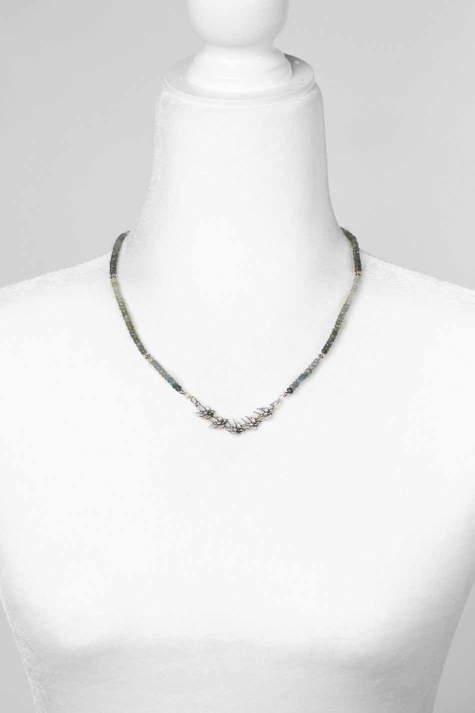 Resilience 18-20" Green Moss Aquamarine With Sterling Silver Birds Simple Necklace