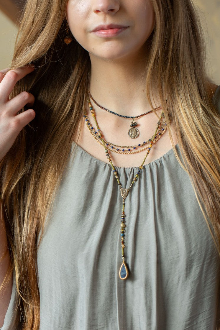 The Sacred Heart Collection blends vintage textures with soulful color. Earthy gemstones with hand-strung beads create a look that’s both meaningful and beautifully wearable.