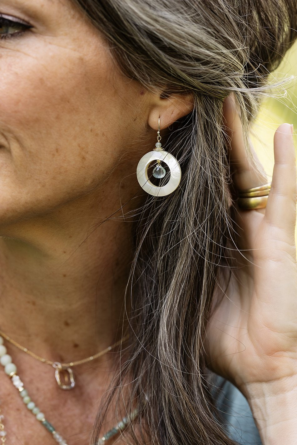 Serenity Aquamarine With Mother Of Pearl Hoop With Seafoam Chalcedony Hoop Earrings