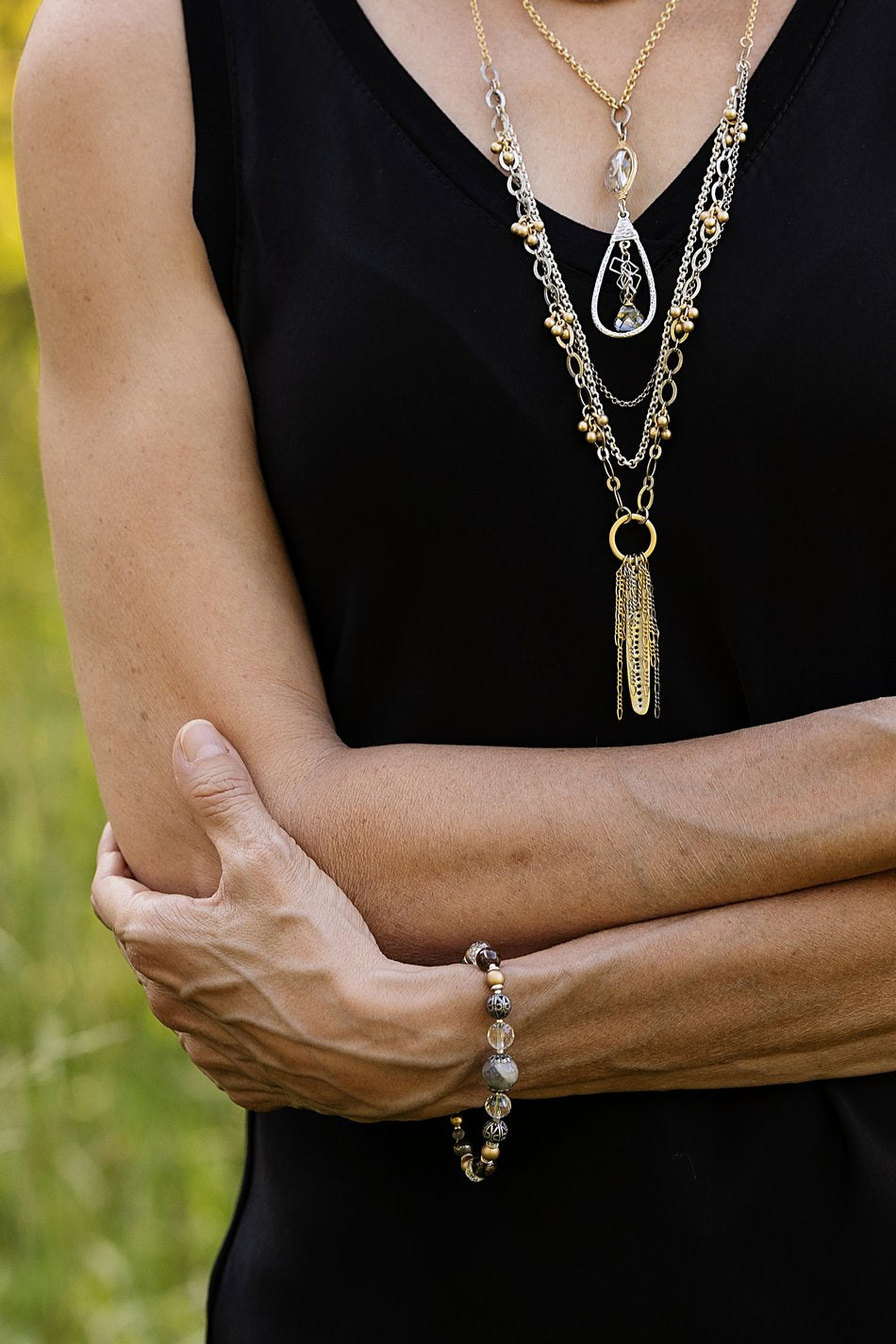 Silver & Gold 7.5-8.5" Labradorite, Quartz, Czech Glass Simple Bracelet