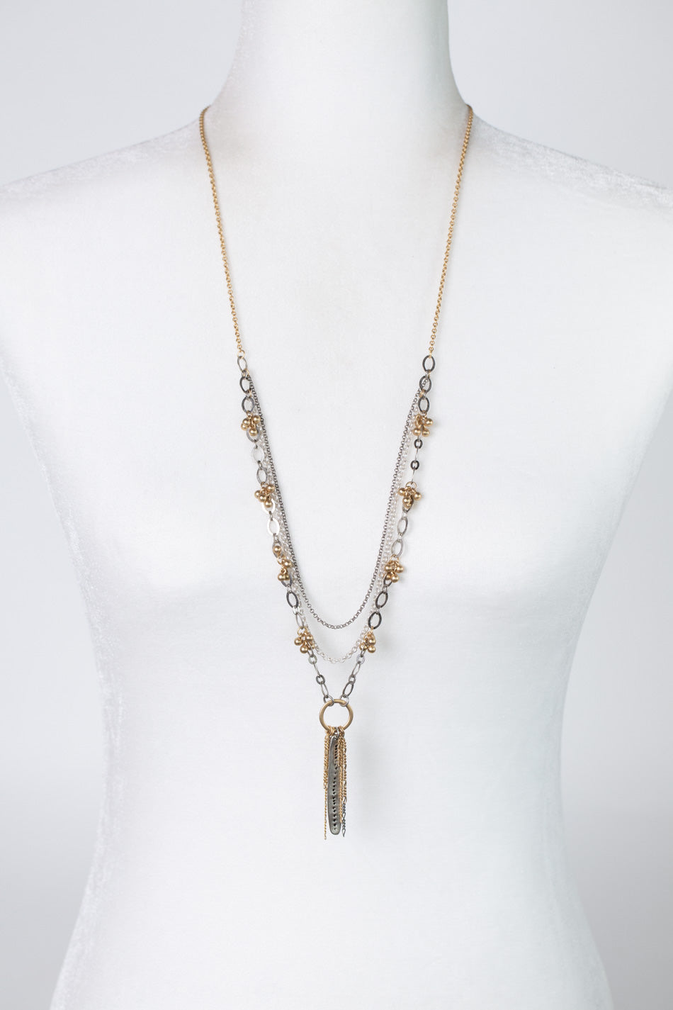 Silver & Gold 29-31" Silver Plated Brass Long Tribal Pendant With Chain Dangles Multistrand Necklace