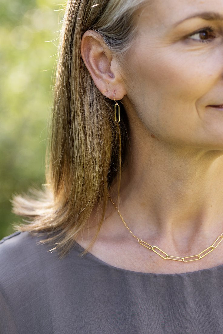 Thoughtfully designed for a minimalistic style. The paperclip design is shorter in style and perfect for pairing with other gold jewelry or other items from our Simplicity collection.