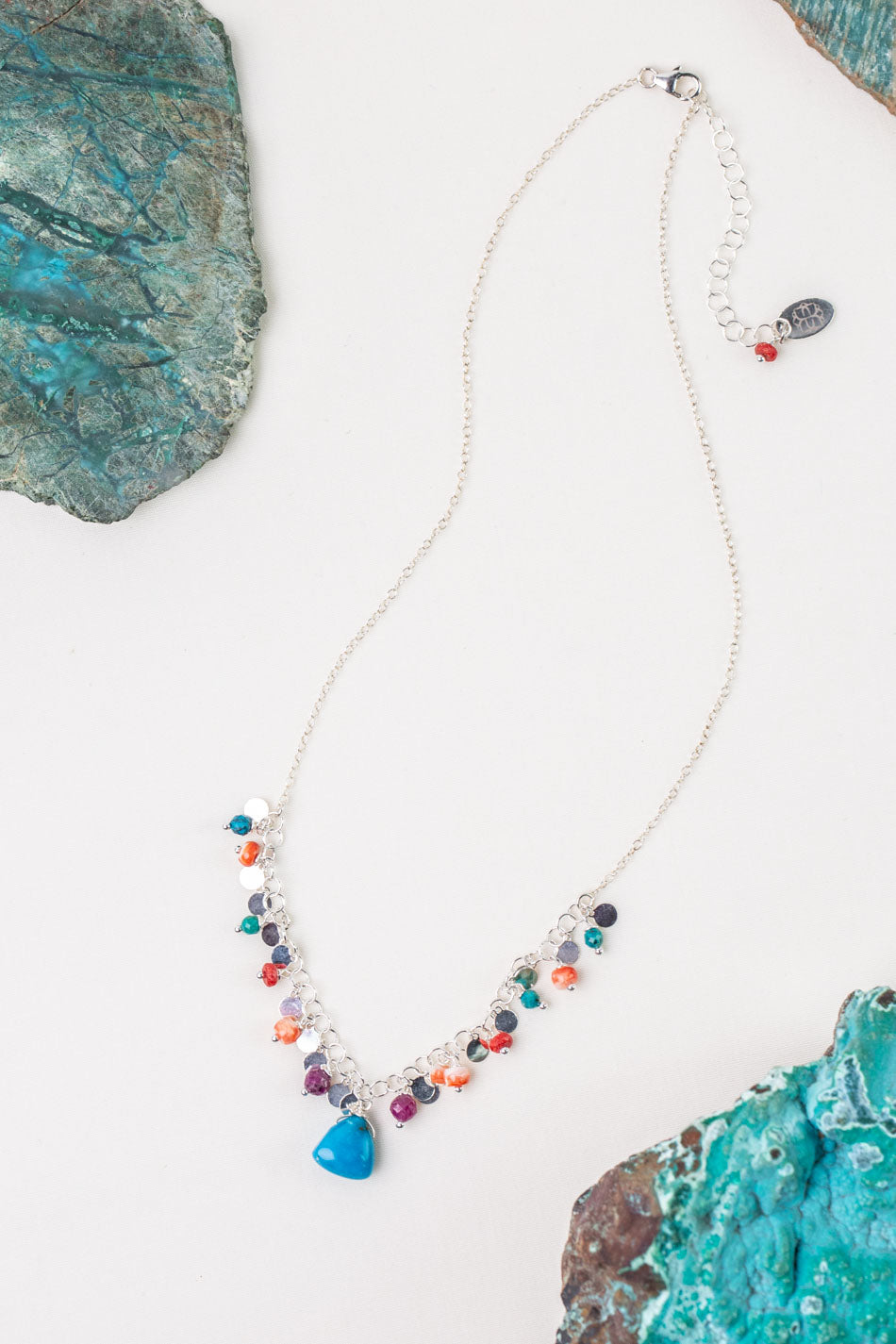 One Of A Kind 15.5-17.5" Turquoise, Spiny Oyster Cluster Necklace