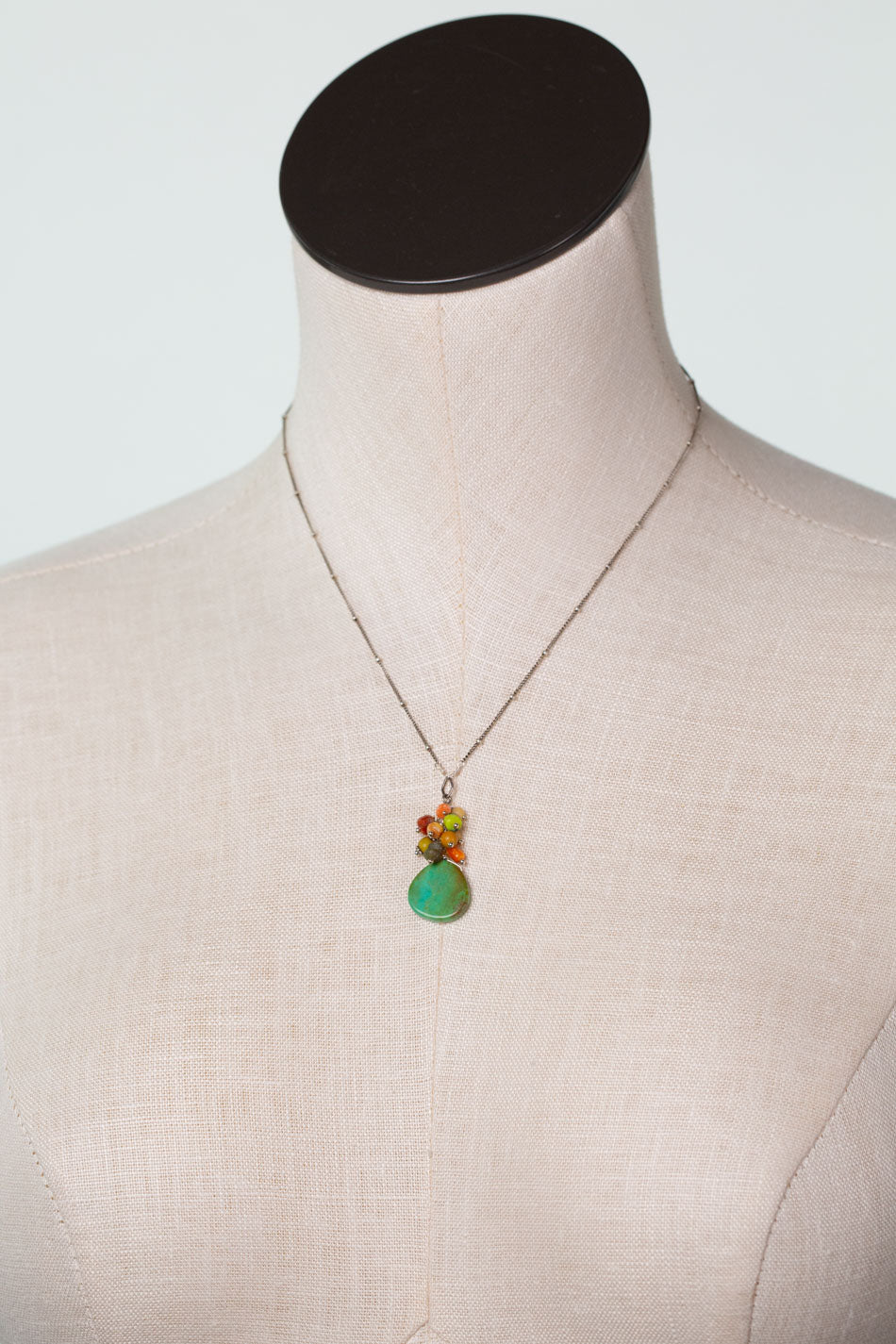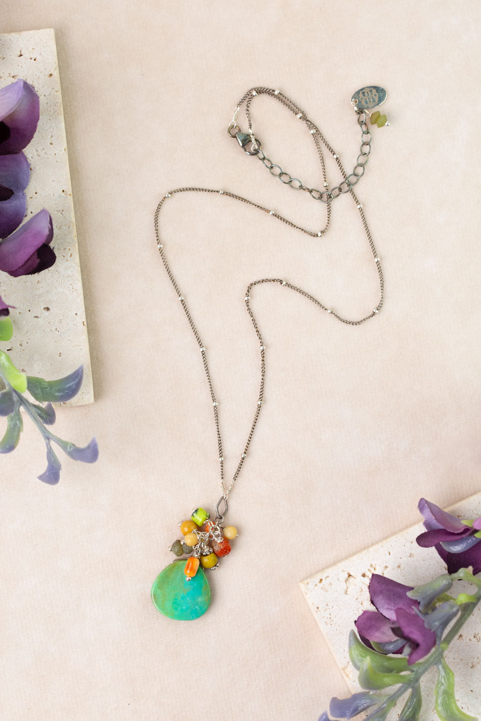 Earthen 16-18" Turquoise, Czech Glass, Spiny Oyster Cluster Necklace