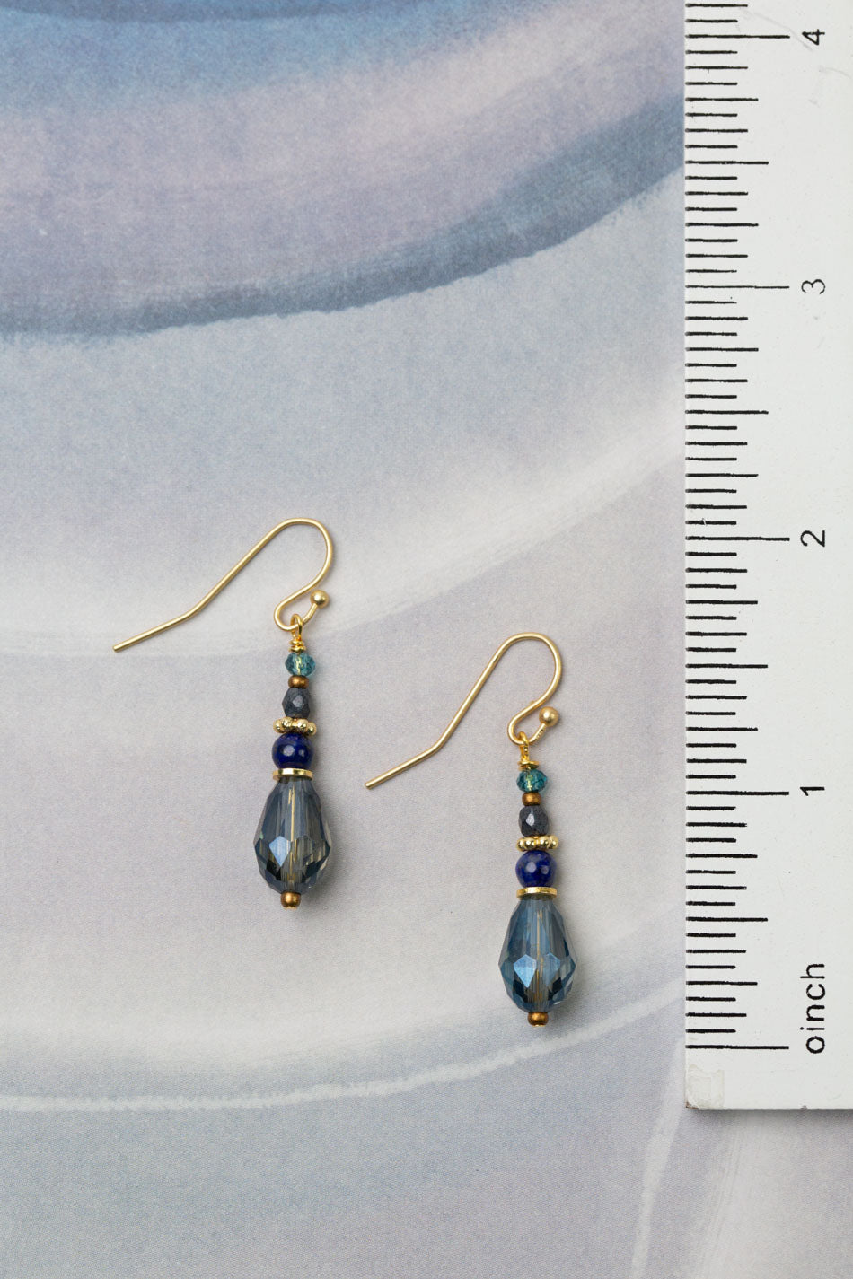 Starry Night Lapis Lazuli, Czech Glass With Blue Faceted Crystal Drop Simple Earrings