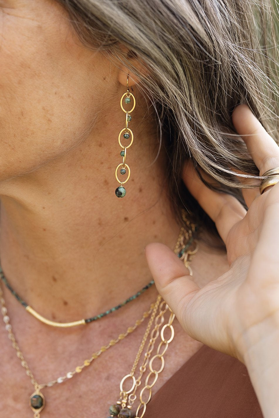 The perfect dangle earrings for the Tranquil Gardens Collection. This artisan design rests at approximately 3" from gold filled ear wires.