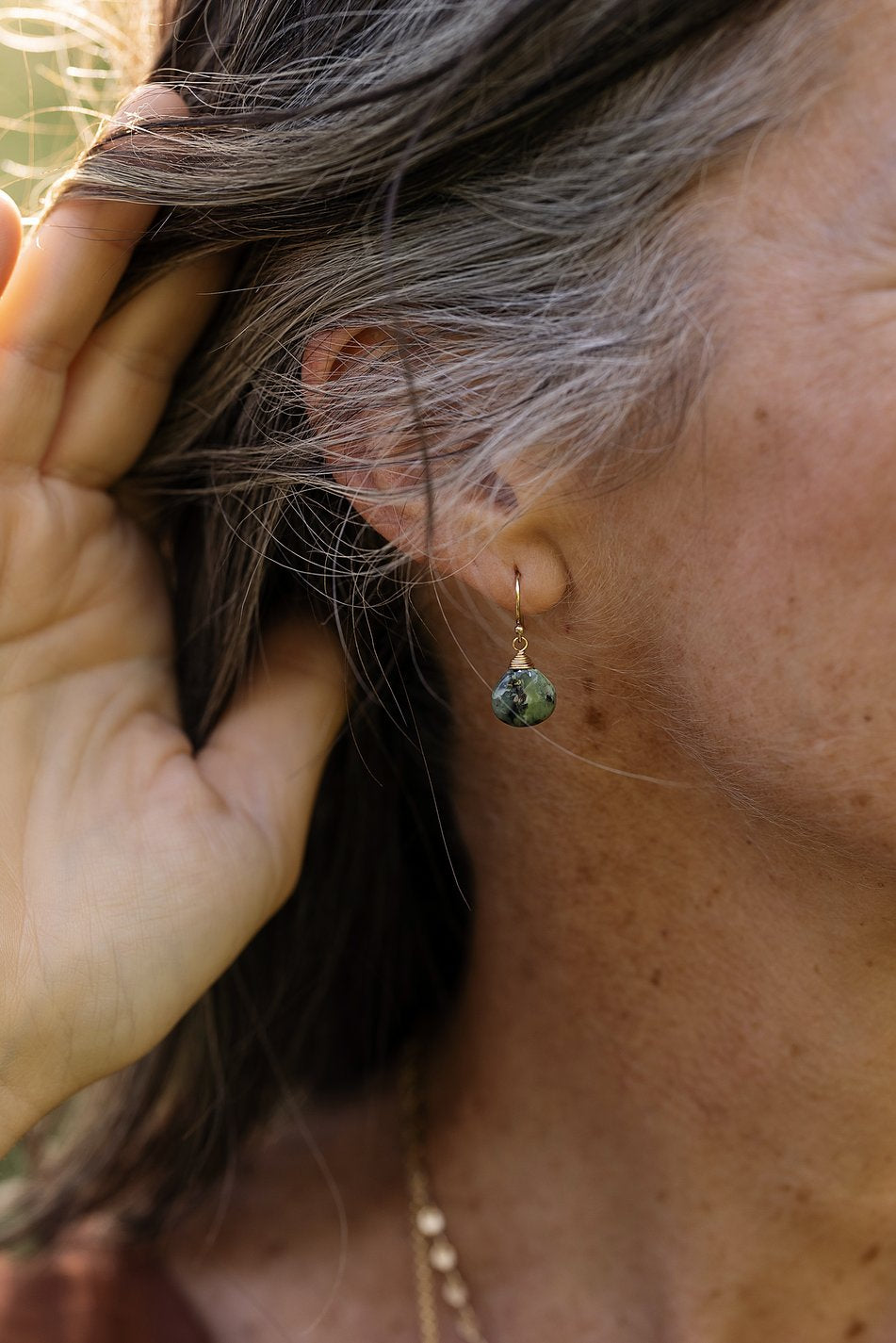 The perfect dangle earrings for the Tranquil Gardens Collection. This artisan design rests at approximately 1" from gold filled ear wires.