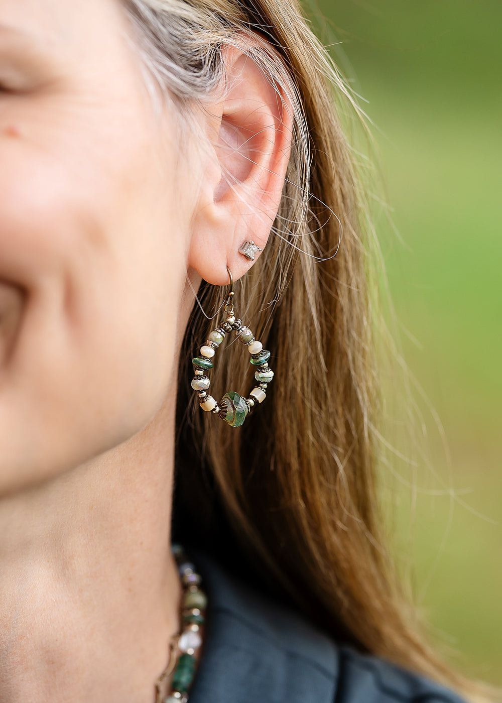 Venetian Dreams Czech Glass, Mother Of Pearl With Faceted Amazonite Briolette Hoop Earrings