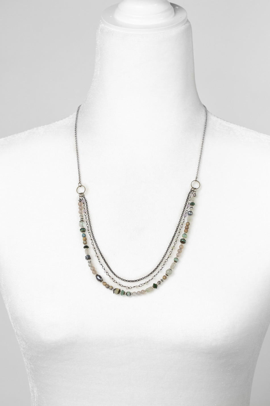 Venetian Dreams 22.5-24.5" Freshwater Pearl, Fluorite, Roman Glass Multistrand Necklace