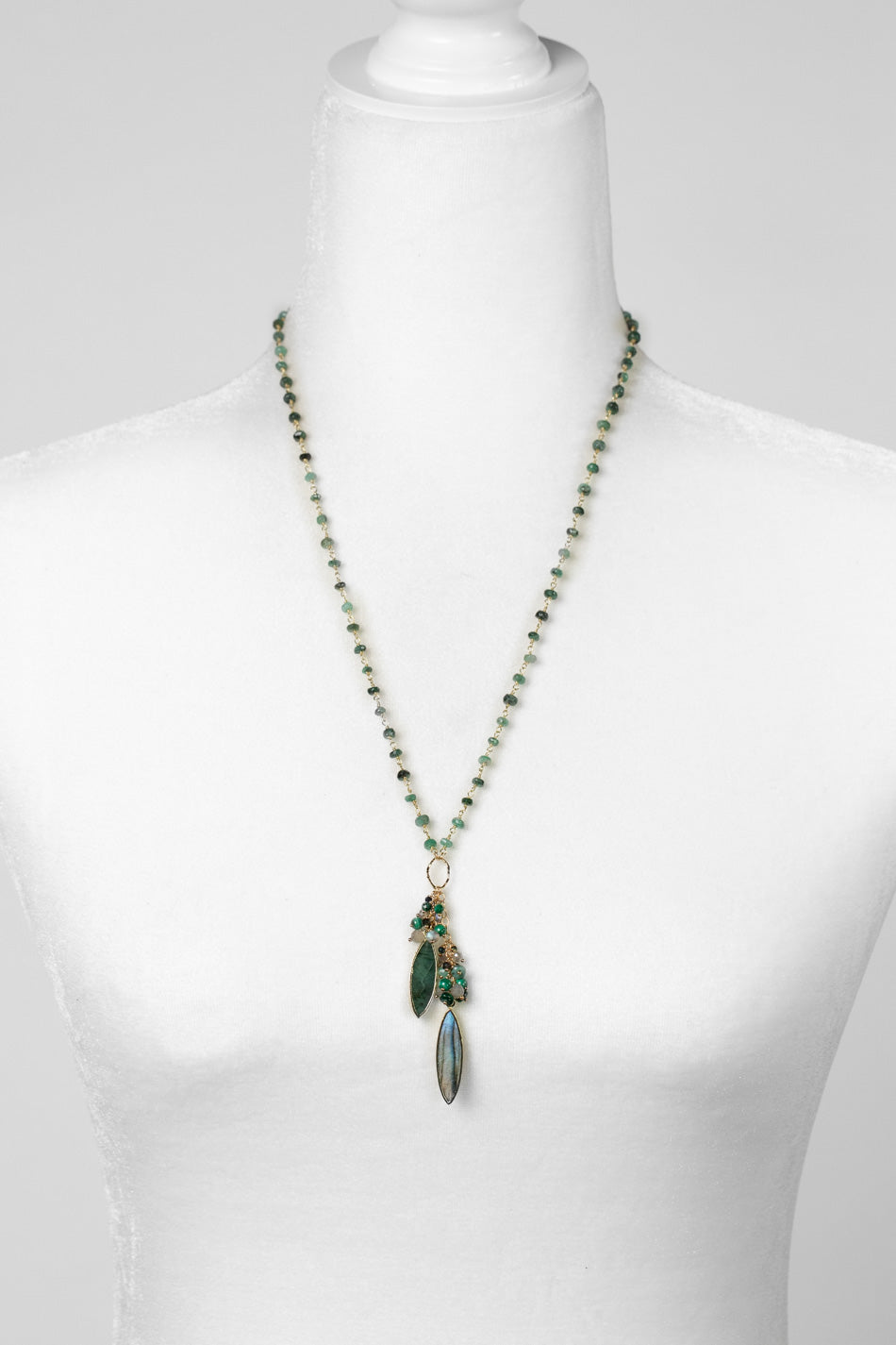 Verdant 24-26" Gem Chain With Emerald, Labradorite, Cats Eye And Malachite Cluster Necklace