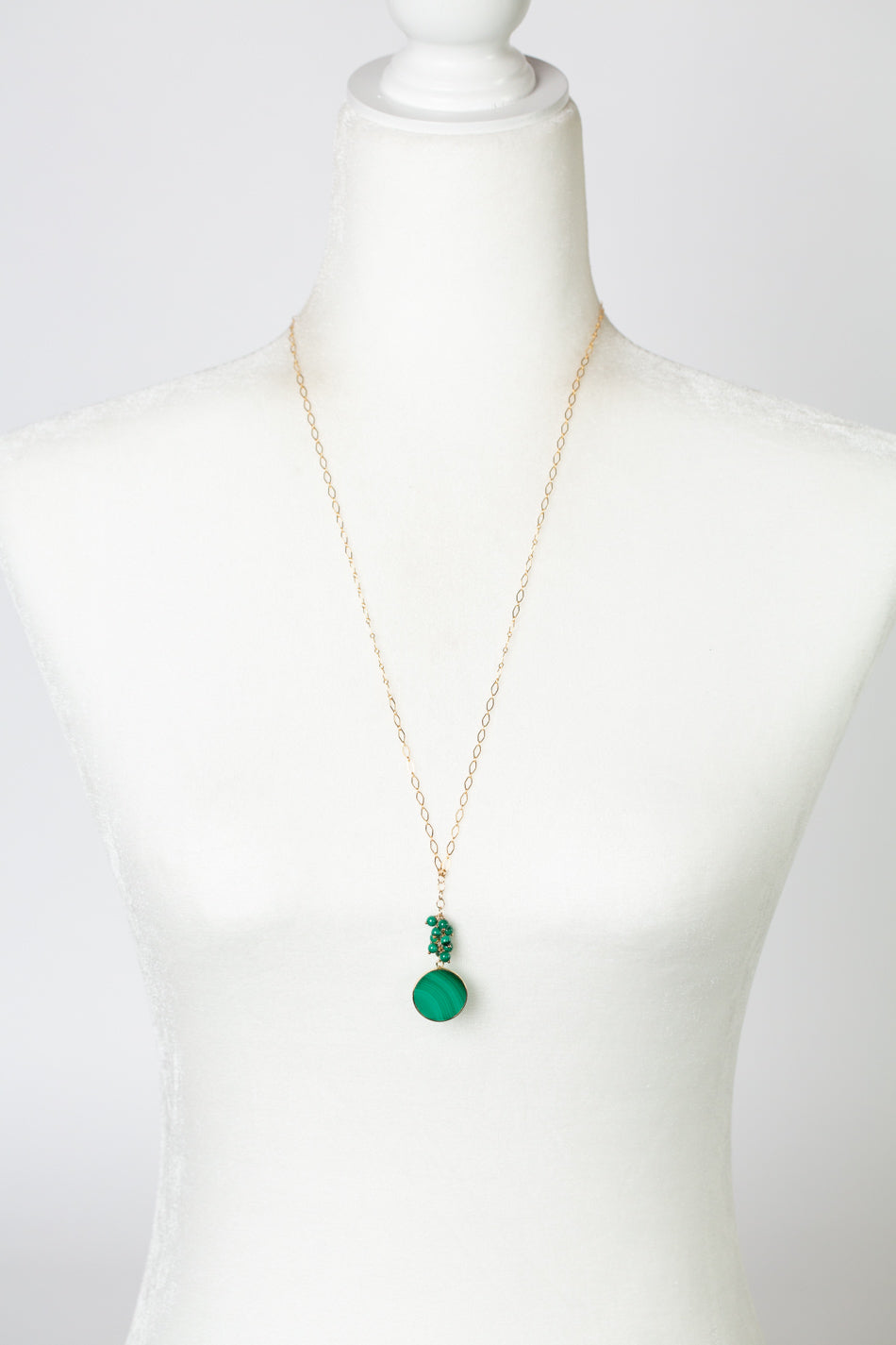 Verdant 25.5-27.5" Gold Filled Malachite Pendant Cluster Necklace