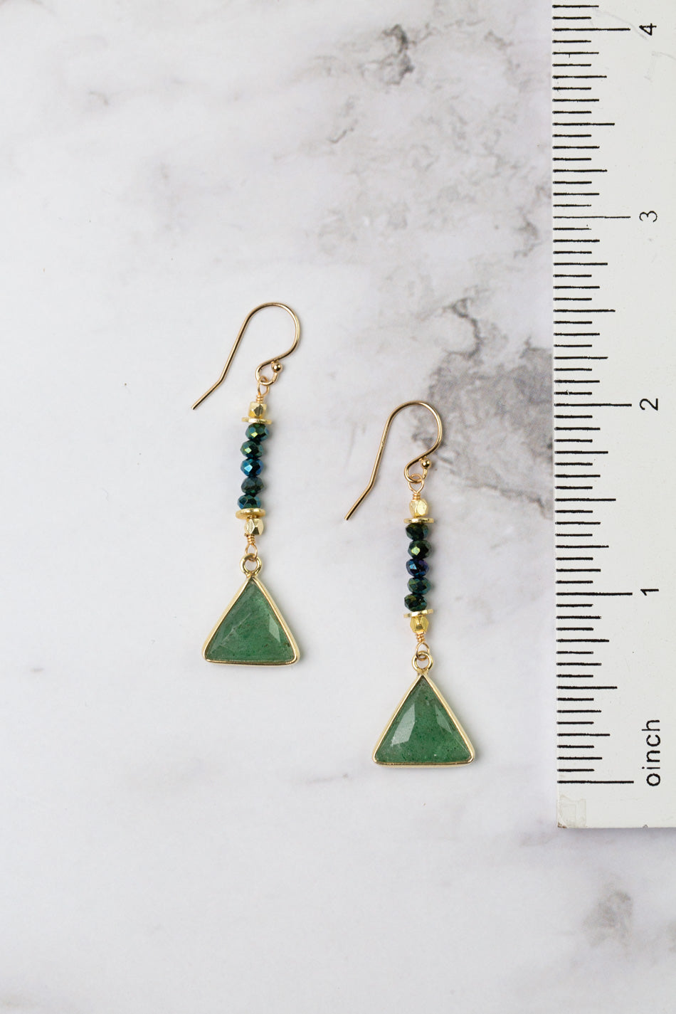 Verdant Pyrite With Green Aventurine Triangle Dangle Earrings