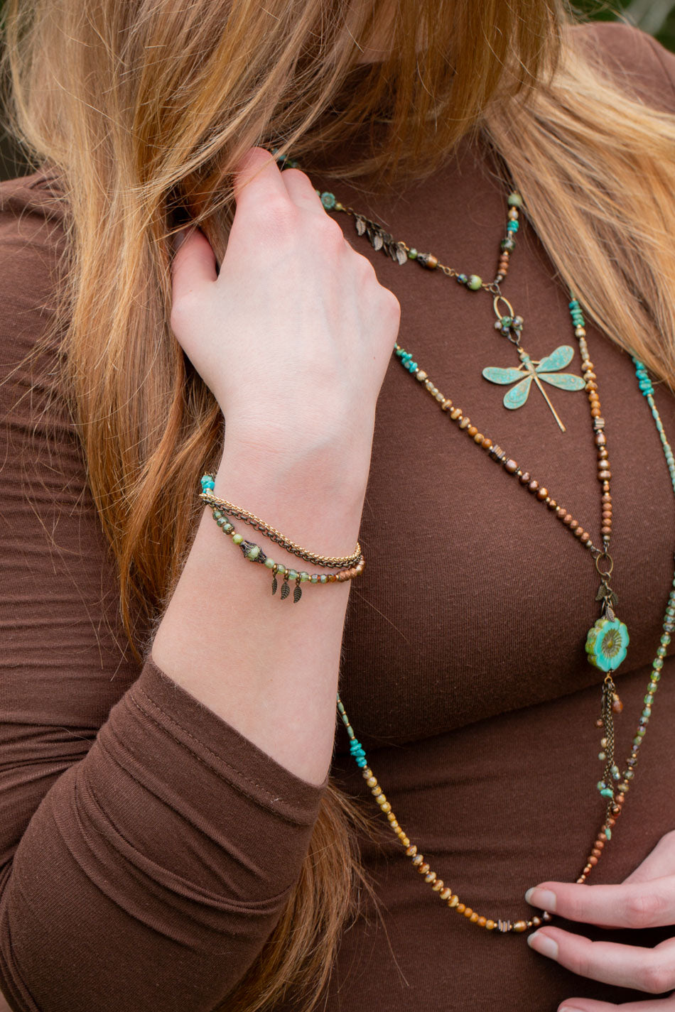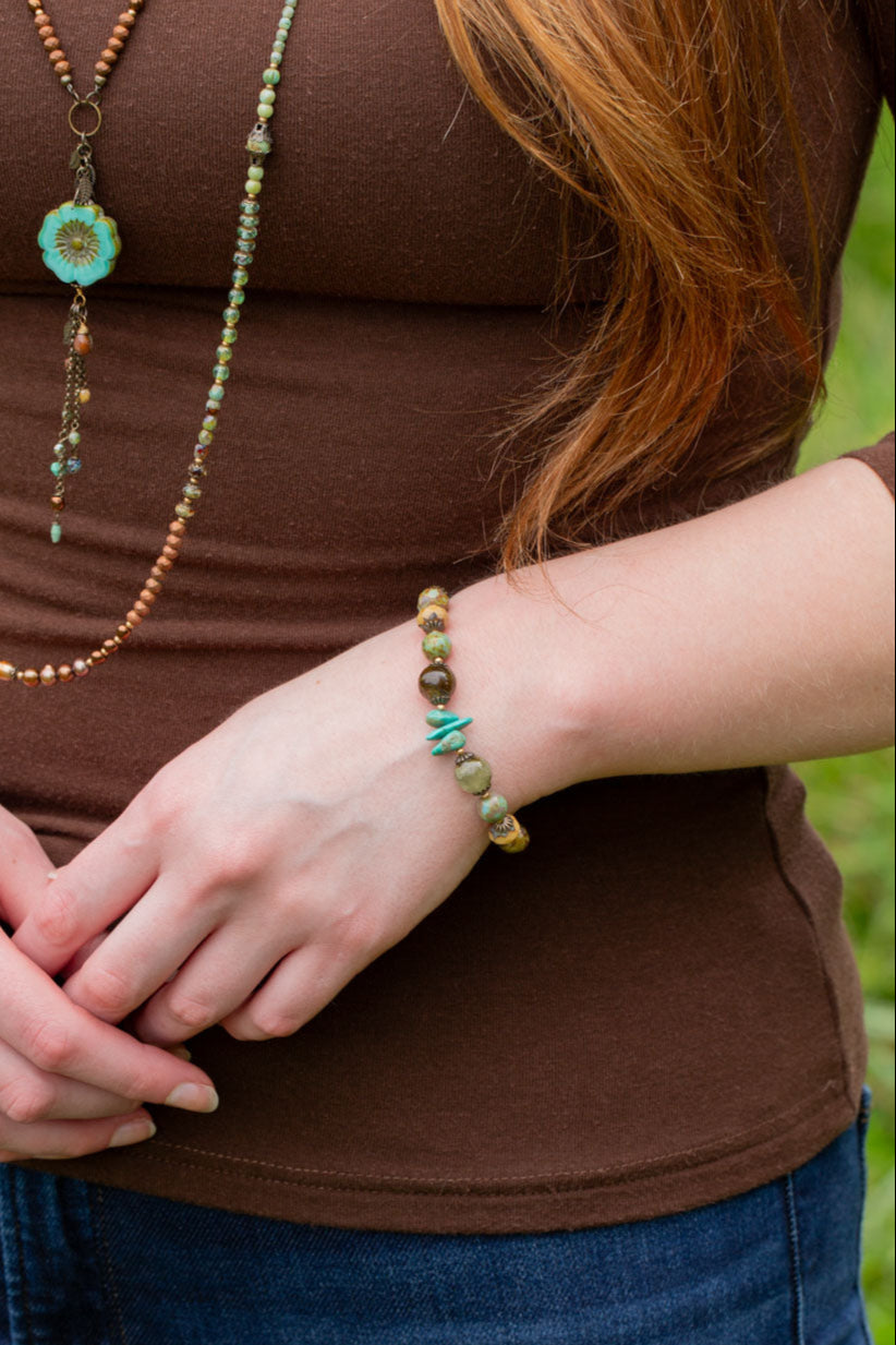 Rustic Creek 7.5-8.5" Czech Glass, Turquoise, Jasper Collage Bracelet