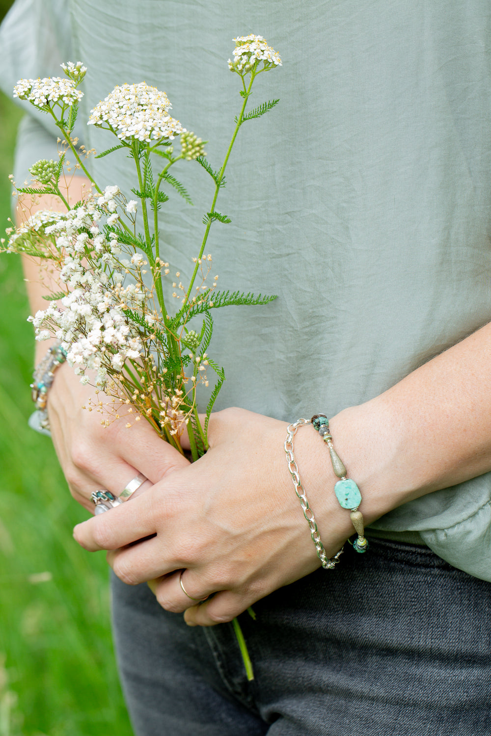 Mystic 7.5-8.5" Turquoise, Czech Glass, Pearl Simple Bracelet