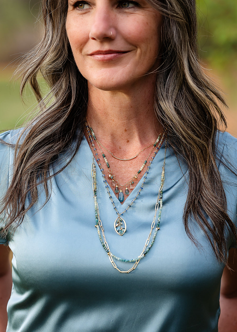 Ocean Waves 19.5-21.5" Opal, Gemstone Chain, Kyanite, Blue Quartz Cluster Necklace
