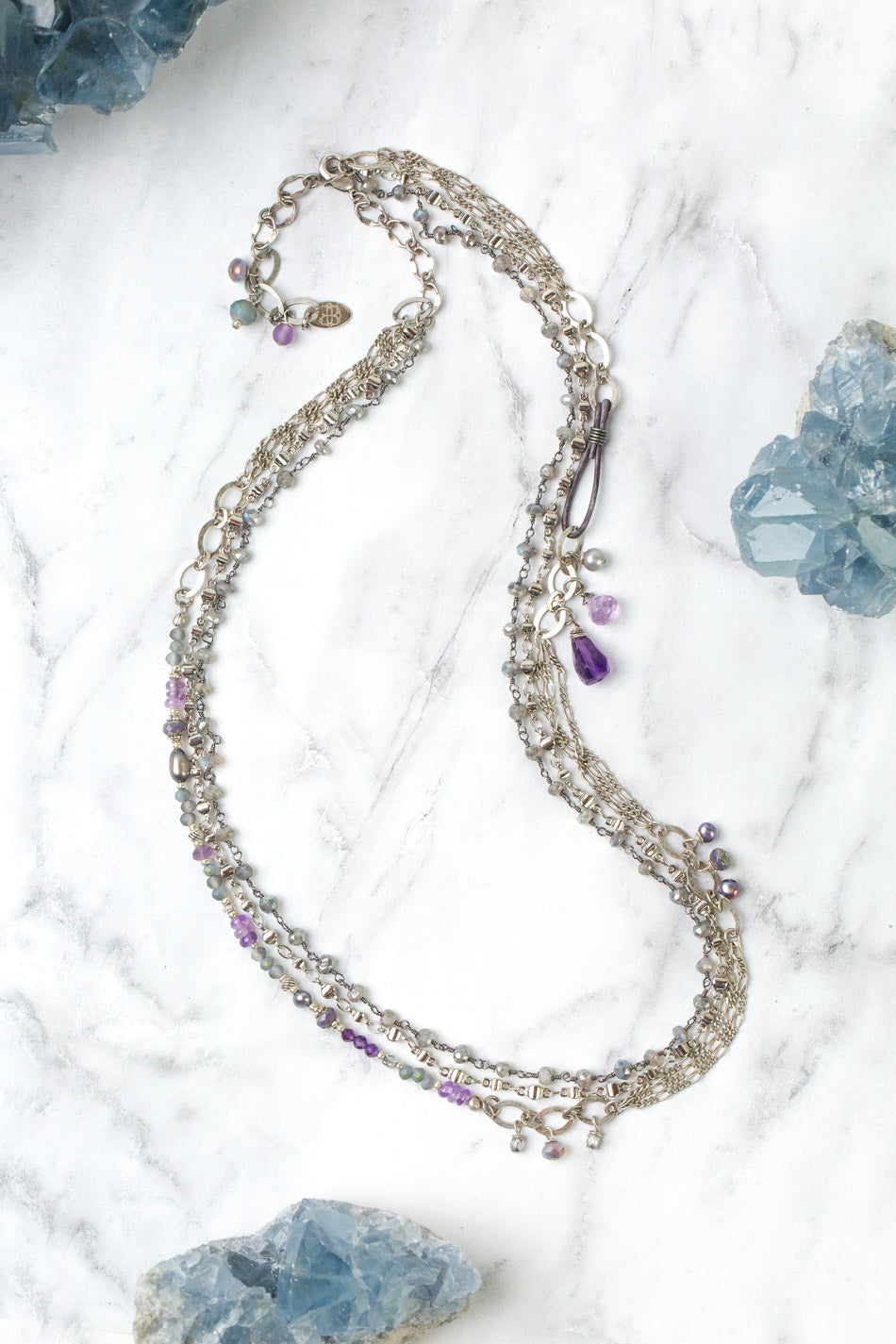 Reflections 24-26" Freshwater Pearl, Labradorite, Gemstone Chain, Crystal Multistrand Necklace