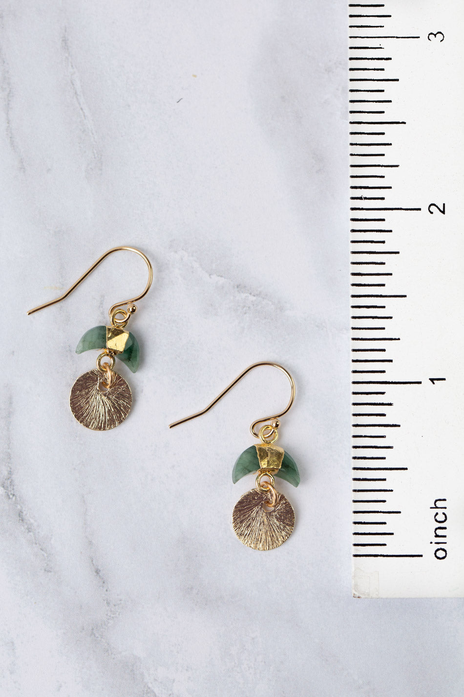 Verdant Gold Plated Emerald Crescent Moon Dangle Earrings