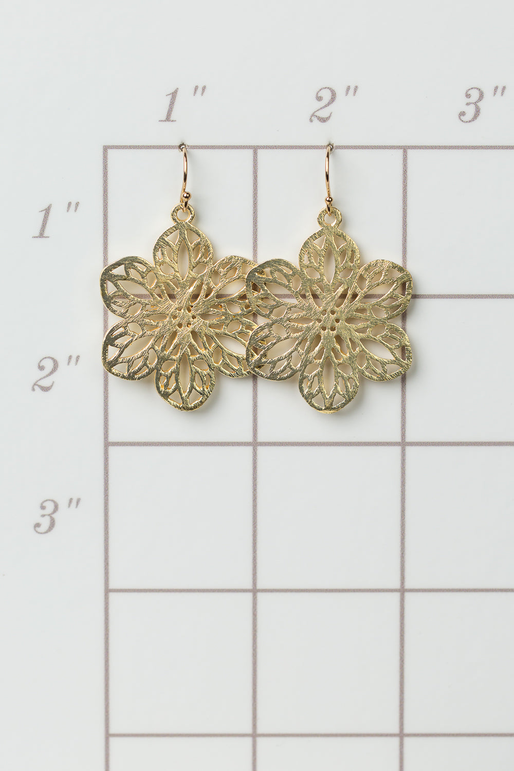 Floral in design, these brushed gold findings are perfect for any flower lover! They are created with brushed gold plated brass, and dangle from gold filled ear wires.