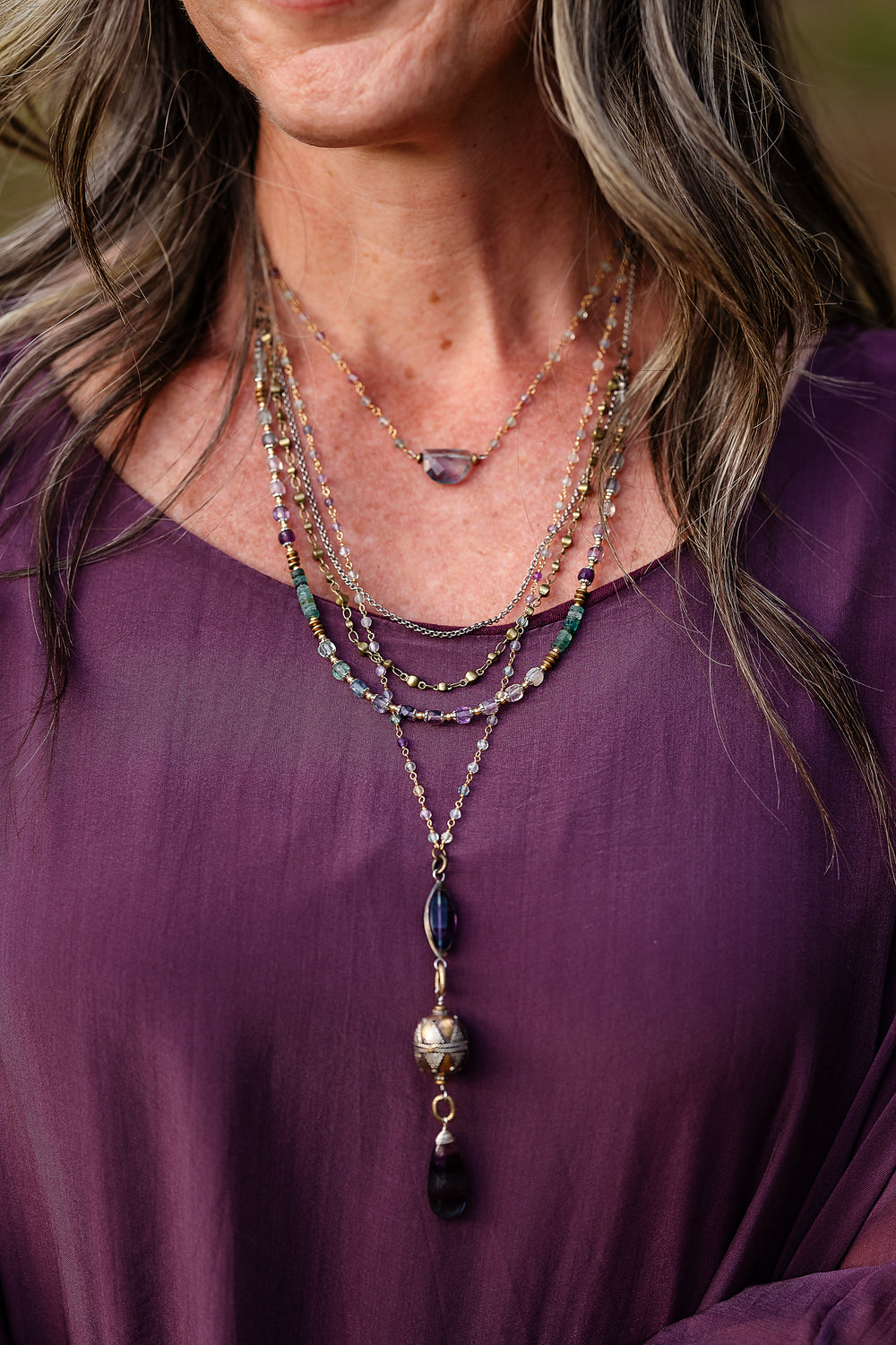 Aspire 19.5-21.5"Fluorite, Roman Glass Multistrand Necklace