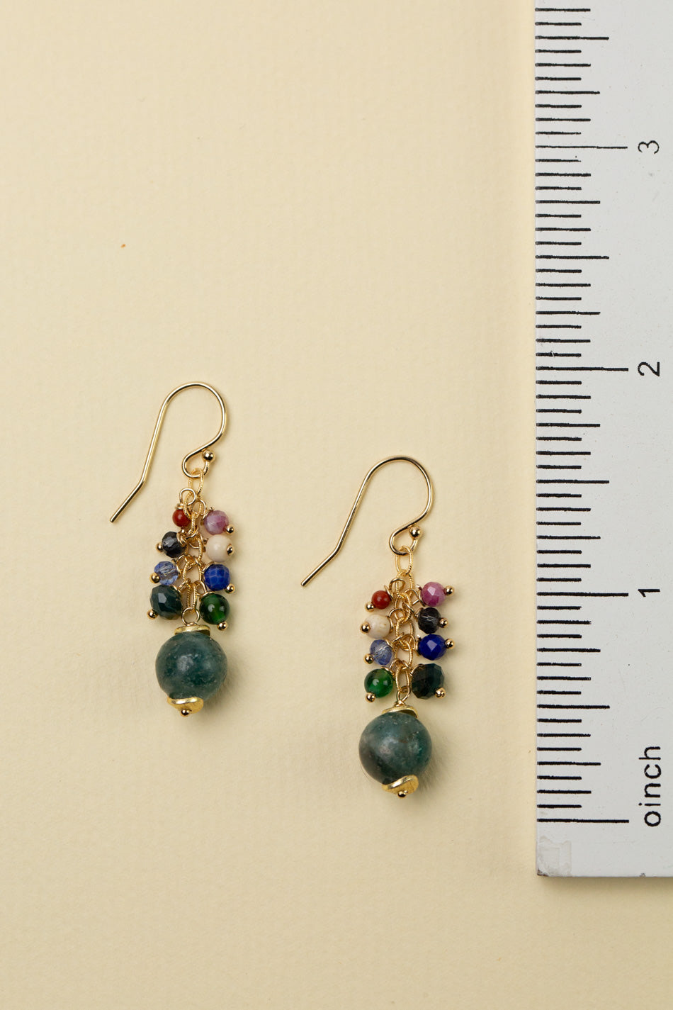Forget Me Not Lapis Lazuli, Ruby, Red Jasper With Green Apatite Cluster Earrings