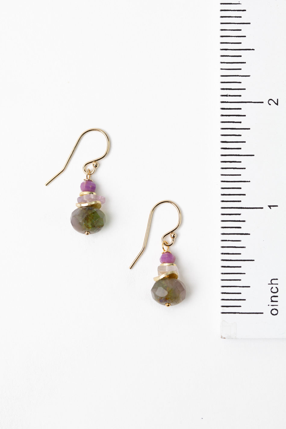 Hydrangea Amethyst, Phosphosiderite, Czech Glass Stacked Simple Earrings