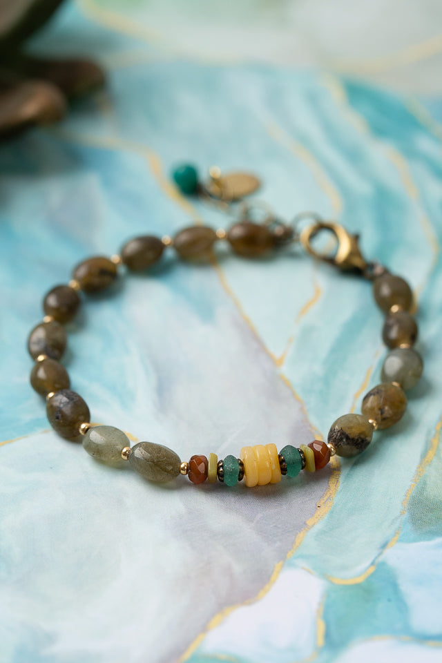 River Ridge 7.5-8.5" Roman Glass, Czech Glass With Honey Opal Simple Bracelet