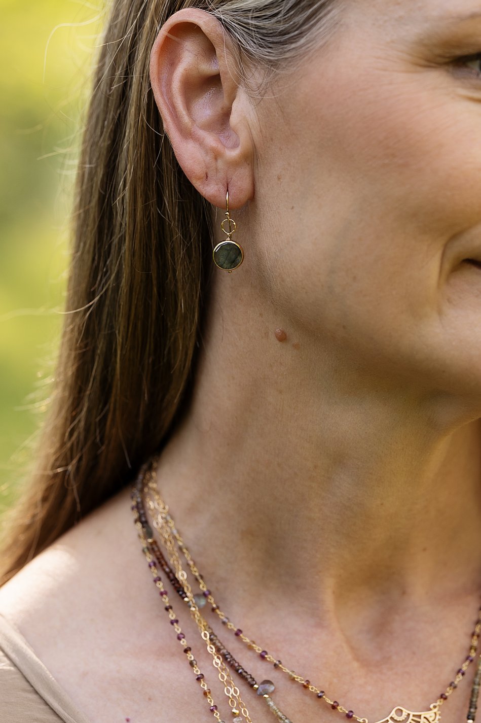 Blue Moon Labradorite Coin Shaped Bezel With Hammered Circle Simple Earrings