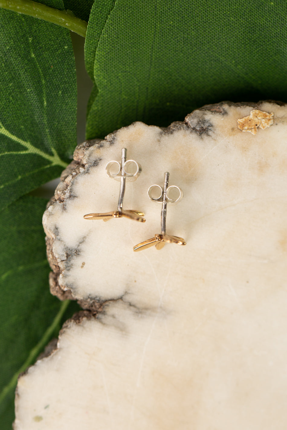 Celebrate transformations and new beginnings with these simple dragonfly earrings. With a gold plated dragonfly on sterling silver posts that are perfect for everyday wear.