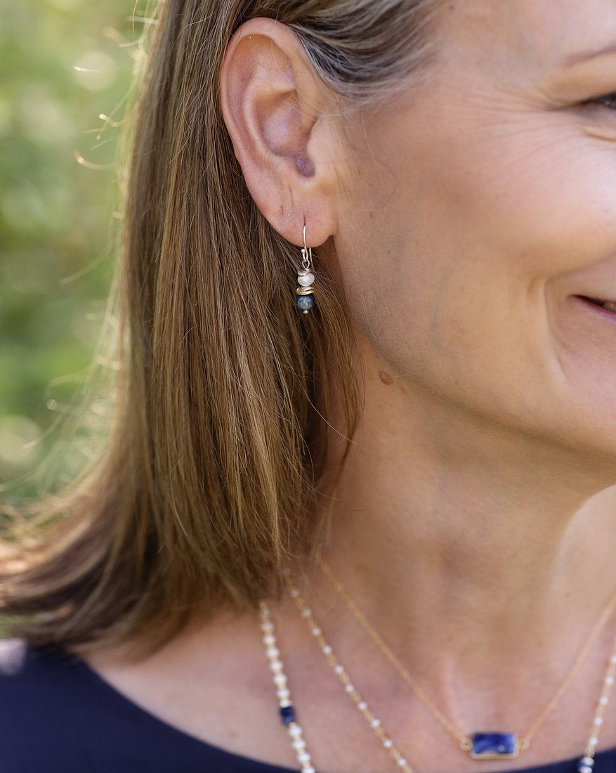 Seaside Kyanite, Fresh Water Pearl Simple Dangle Earrings
